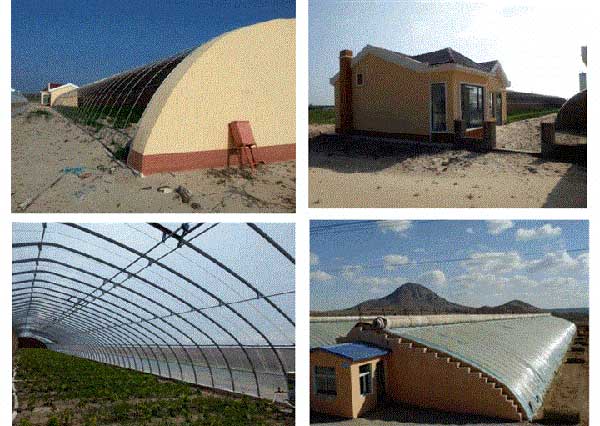 在確立溫室大棚位置后,先行平整場地,放線,開挖基礎。墻體基槽寬40厘米,深1-1.3米,長度由溫室大棚的長度和跨度確定?;弁诤煤螅稍诓鄣茁裆惩?,槽內(nèi)兩端與地面相平位置及所需槽深位置均放線確定槽深度。在北方寒冷地區(qū),可在槽內(nèi)保溫墻體兩側(cè)用河沙回填、夯實,以防凍土熱脹冷縮引發(fā)墻體開裂。也可用磚墻砌槽。