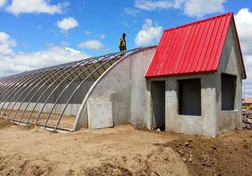 新型保溫板墻體溫室大棚施工完畢后,可在后墻后側(cè)建立蘑菇房,在山墻外側(cè)建附屬工作間。如果安裝人員充足,也可在安裝完后墻體、山墻后,人員分組同時進行安裝蘑菇房、工作間及棚骨架等。